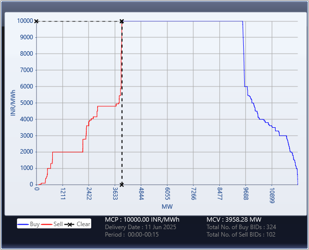 | Time Block | Price (in Rs./MWh) | Buy / Demand (in MW) | Sell / Supply (in MW) |